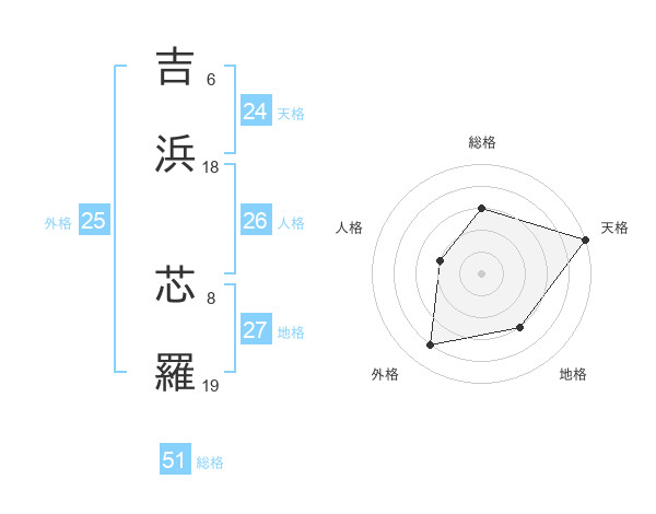 吉浜 芯羅さんを姓名の画数から五運を鑑定