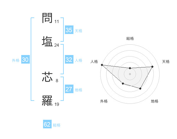 問塩 芯羅さんを姓名の画数から五運を鑑定
