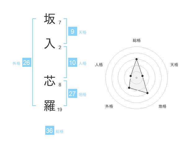 坂入 芯羅さんの地格は27画の3点!