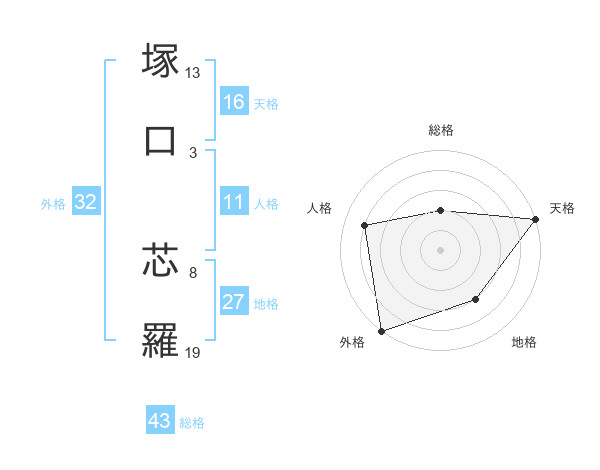 塚口 芯羅さんの天格は16画の5点!