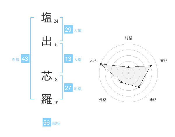 塩出 芯羅さんを姓名の画数から五運を鑑定
