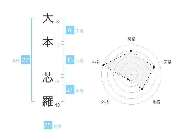 大本 芯羅さんを姓名の画数から五運を鑑定