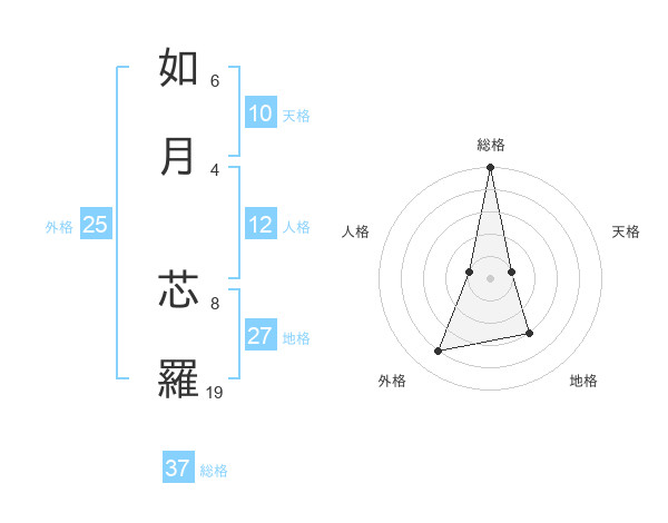 如月 芯羅さんを姓名の画数から五運を鑑定