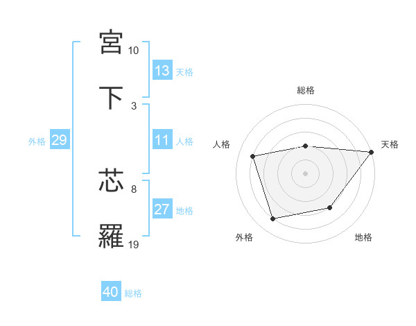 宮下 芯羅さんの天格は13画の5点!
