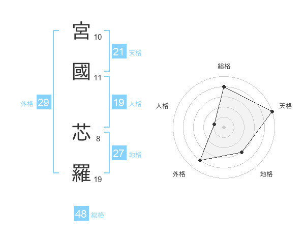 宮國 芯羅さんを姓名の画数から五運を鑑定
