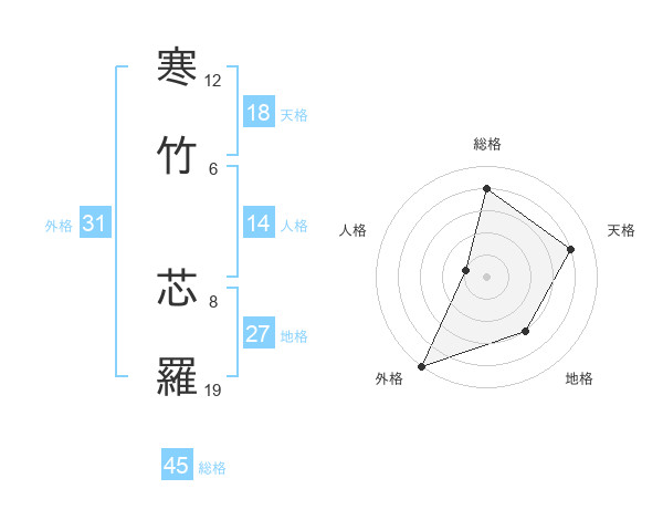 寒竹 芯羅さんを姓名の画数から五運を鑑定