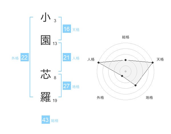 小園 芯羅さんを姓名の画数から五運を鑑定