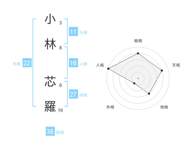 小林 芯羅さんの総格は38画の4点!