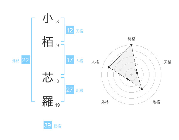 小栢 芯羅さんの外格は22画の1点!