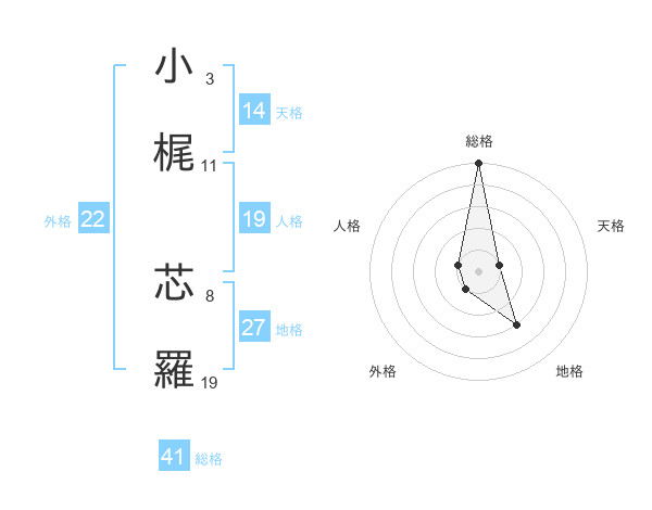 小梶 芯羅さんを姓名の画数から五運を鑑定