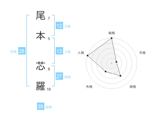 尾本 芯羅さんの総格は39画の5点!