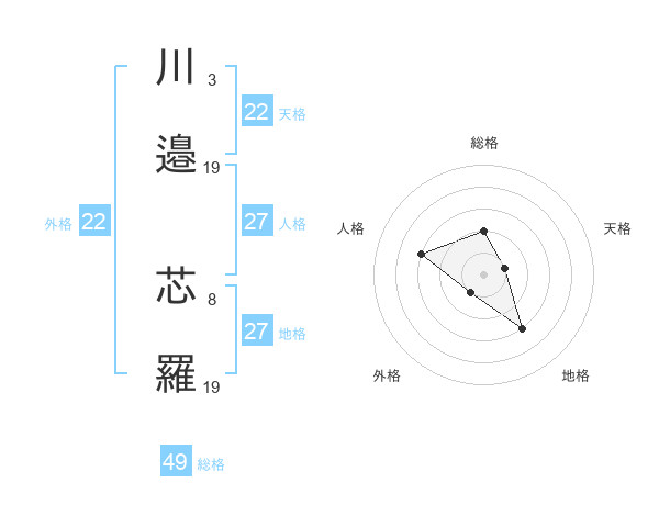川邉 芯羅さんの外格は22画の1点!