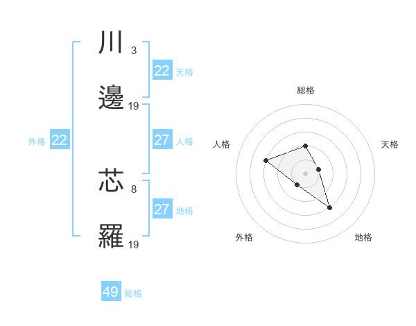 川邊 芯羅さんの外格は22画の1点!