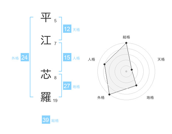 平江 芯羅さんの総格は39画の5点!