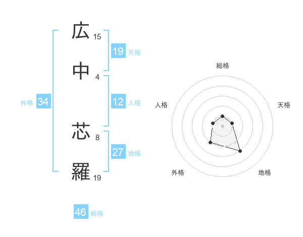 広中 芯羅さんを姓名の画数から五運を鑑定