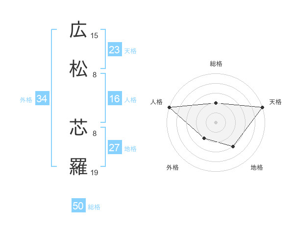 広松 芯羅さんの総格は50画の2点!