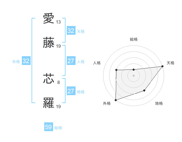愛藤 芯羅さんの外格は32画の5点!