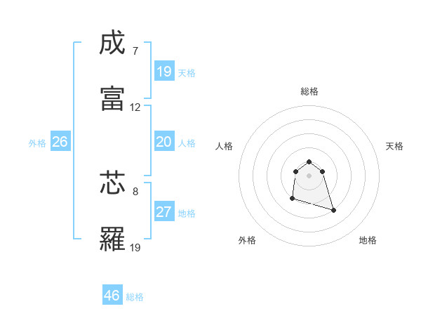 成富 芯羅さんの天格は19画の1点!