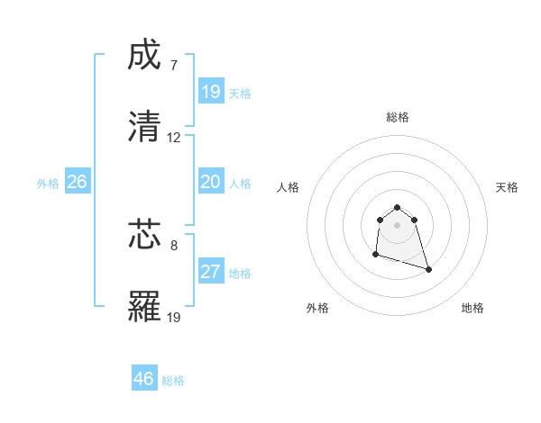 成清 芯羅さんの外格は26画の2点!