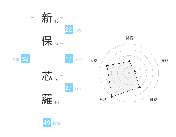 新保 芯羅さんを姓名の画数から五運を鑑定