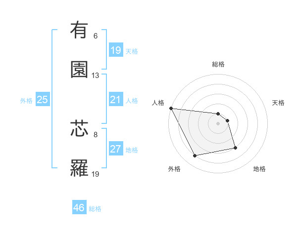 有園 芯羅さんの外格は25画の4点!