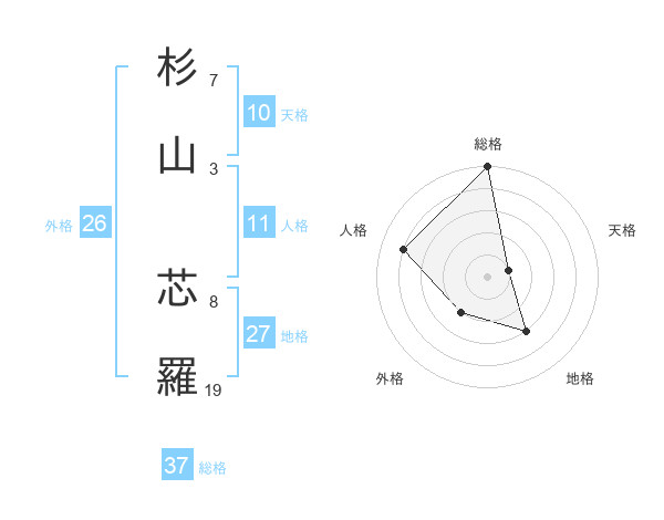 杉山 芯羅さんの総格は37画の5点!