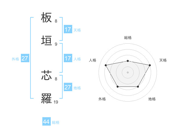 板垣 芯羅さんの天格は17画の4点!