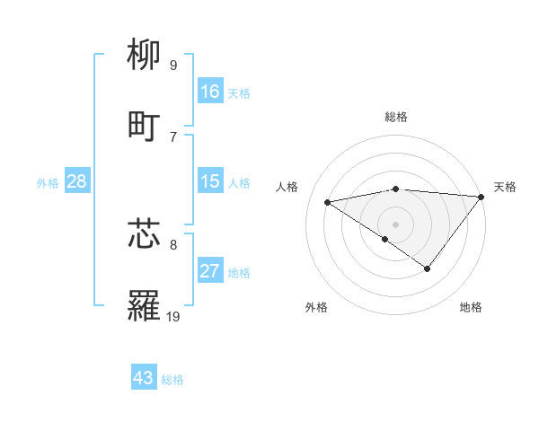 柳町 芯羅さんの天格は16画の5点!