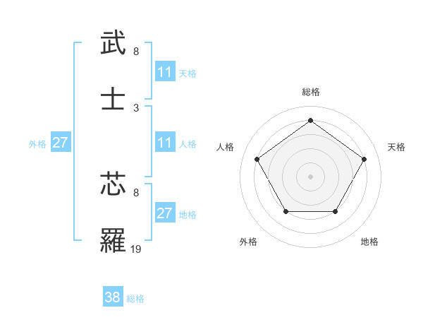 武士 芯羅さんを姓名の画数から五運を鑑定