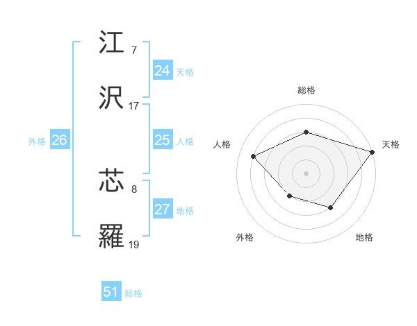 江沢 芯羅さんを姓名の画数から五運を鑑定