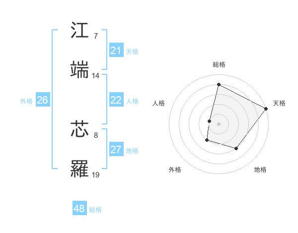 江端 芯羅さんの天格は21画の5点!