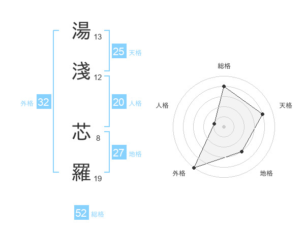 湯淺 芯羅さんの総格は52画の4点!