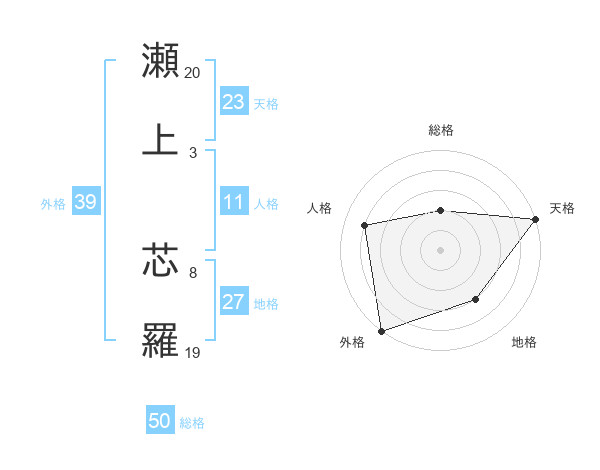 瀬上 芯羅さんを姓名の画数から五運を鑑定