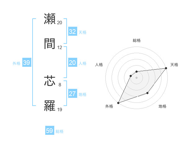 瀬間 芯羅さんを姓名の画数から五運を鑑定