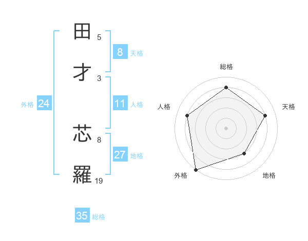 田才 芯羅さんの総格は35画の4点!
