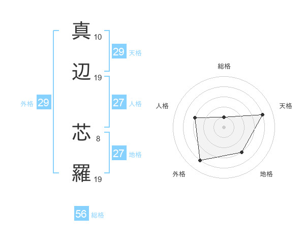 真辺 芯羅さんの外格は29画の4点!