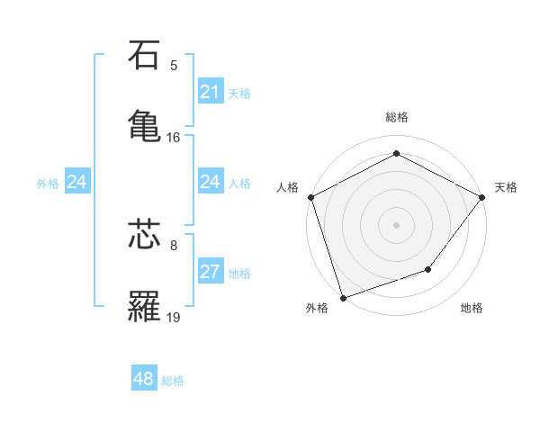 石亀 芯羅さんの総格は48画の4点!