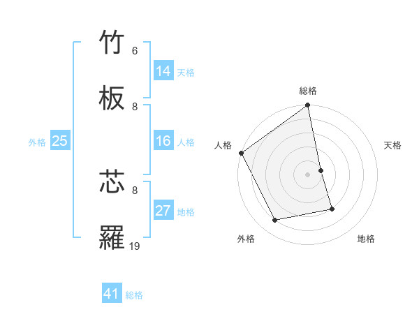 竹板 芯羅さんの総格は41画の5点!