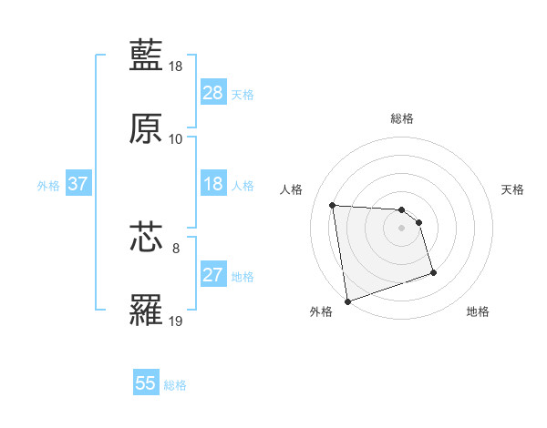 藍原 芯羅さんの外格は37画の5点!