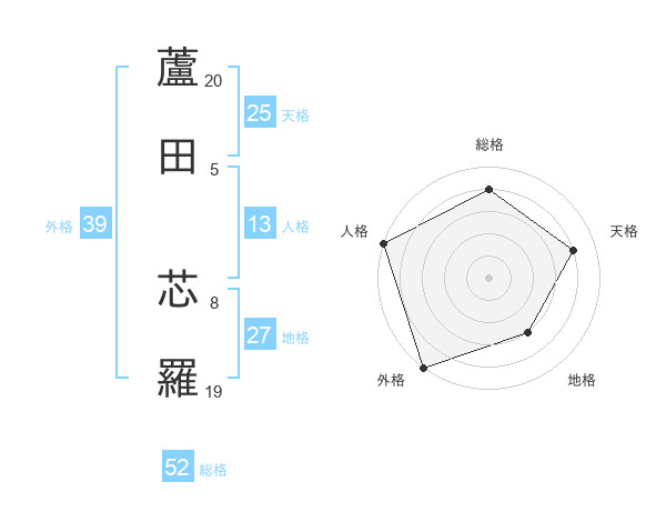 蘆田 芯羅さんの総格は52画の4点!