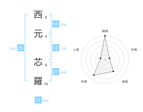 西元 芯羅さんを姓名の画数から五運を鑑定