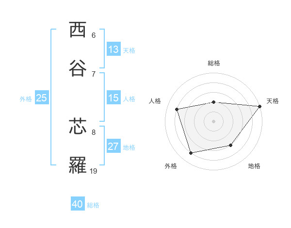 西谷 芯羅さんを姓名の画数から五運を鑑定
