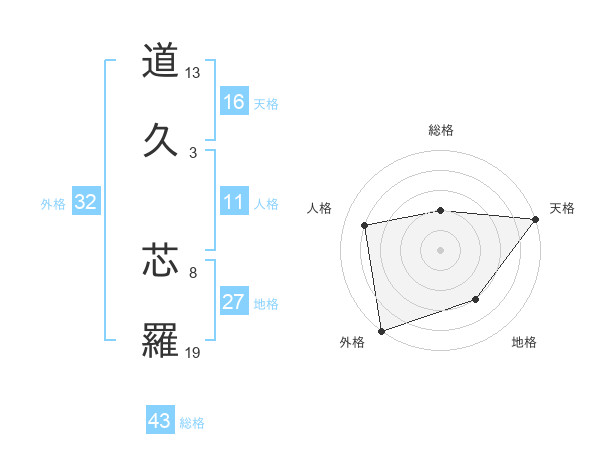 道久 芯羅さんを姓名の画数から五運を鑑定