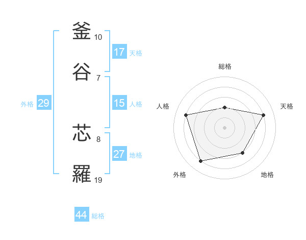 釜谷 芯羅さんの総格は44画の2点!