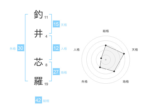 釣井 芯羅さんの天格は15画の4点!