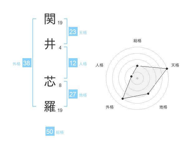 関井 芯羅さんの総格は50画の2点!