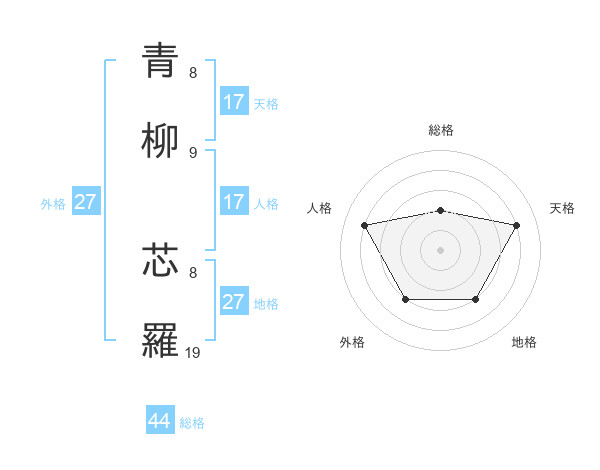 青柳 芯羅さんの天格は17画の4点!