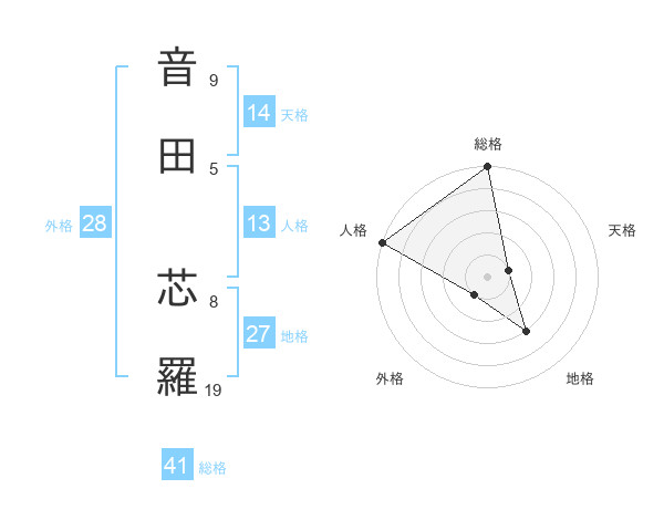 音田 芯羅さんを姓名の画数から五運を鑑定