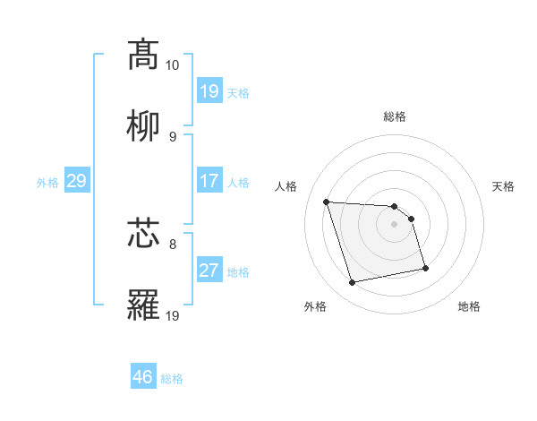 髙柳 芯羅さんの総格は46画の1点!
