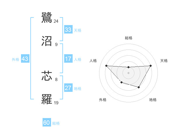 鷺沼 芯羅さんの総格は60画の1点!